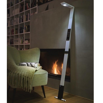 Luctra Flex è una lampada da terra portabile, con manico in gomma regolabile in altezza per garantire la stabilità e la sicurezza in tutte le posizioni.